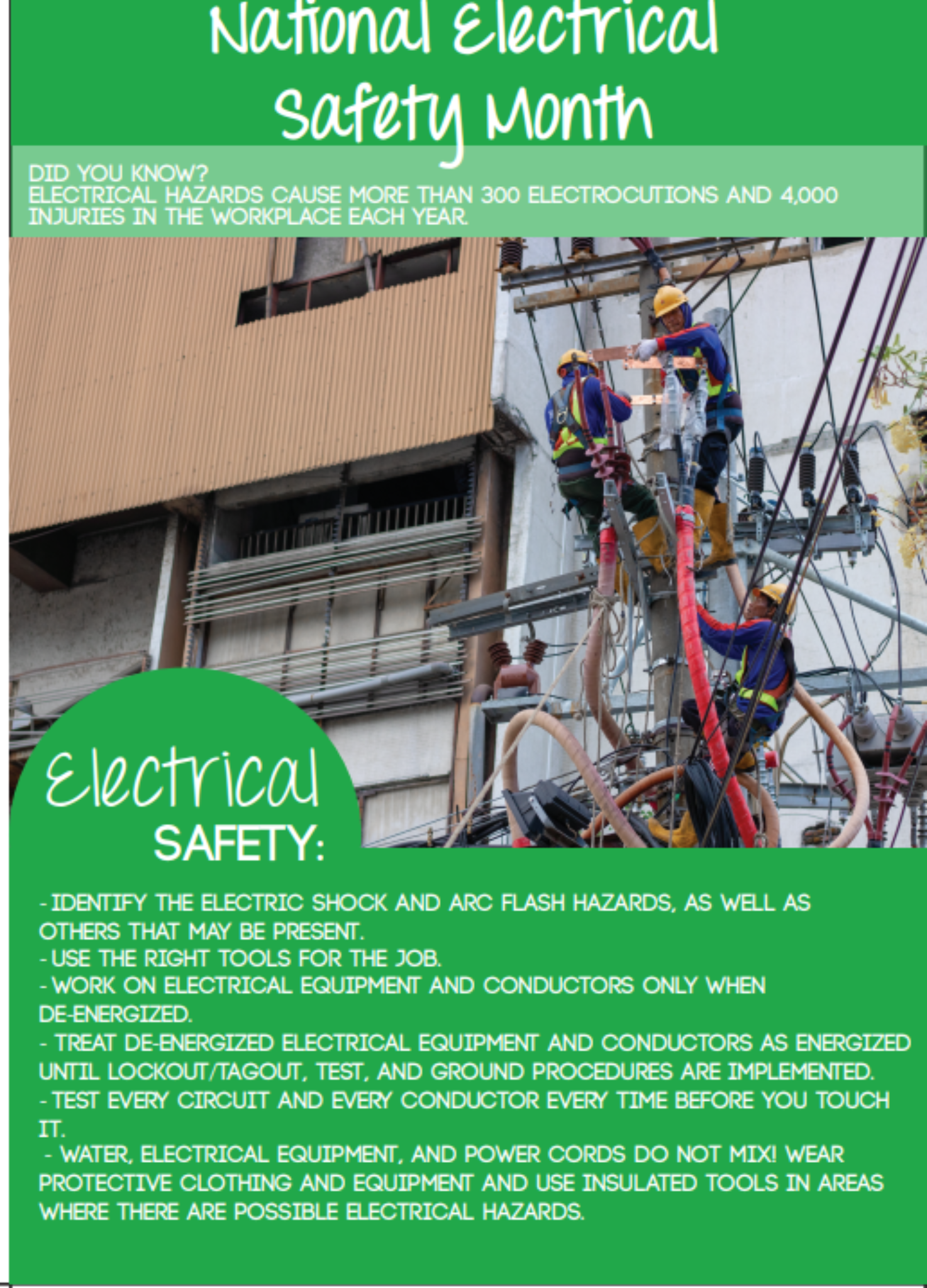 Remind employees of the importance of electrical safety.
