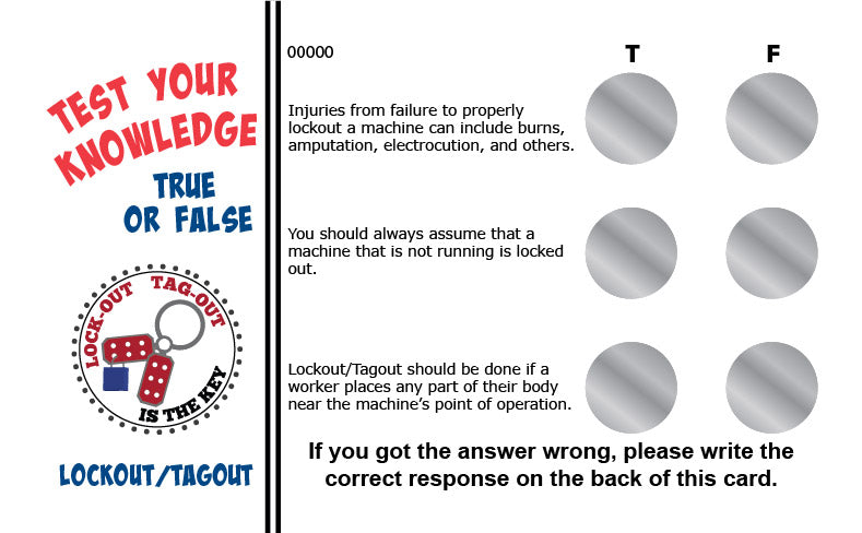 Lockout/Tagout True/False Knowledge Card Package - #402705