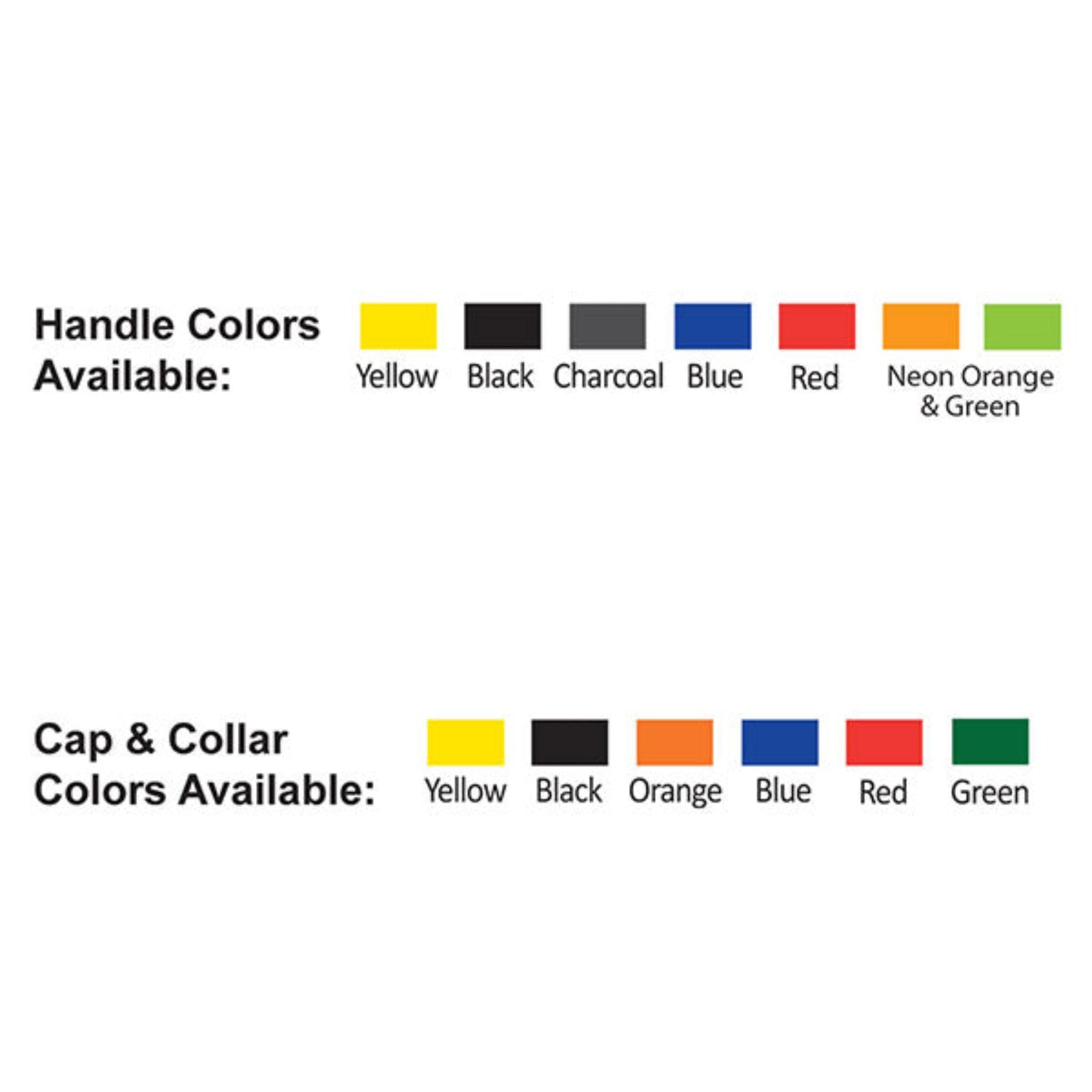 • Handle Colors Available: Yellow, Black, Charcoal, Blue, Red, Neon Orange, or Neon Green
