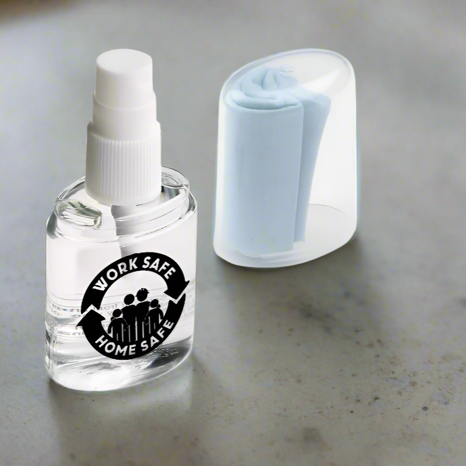 Keep vision clear and promote health and wellness with a Lens Spray Cleaner and Microfiber Cloth, featuring your health and wellness logo—an ideal safety incentive! This convenient kit helps remove smudges, dust, and fingerprints from glasses, safety goggles, and digital screens, ensuring optimal visibility and eye protection. The gentle, streak-free formula is safe for all lenses, while the soft microfiber cloth provides scratch-free cleaning. Perfect for workplaces, safety programs, and employee wellness initiatives, this essential tool supports eye health, clarity, and overall well-being every day!
