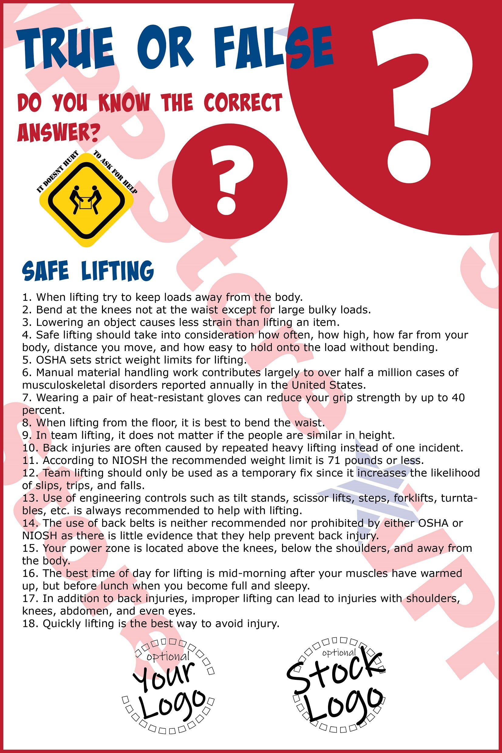 True False Safe Lifting Poster - #402709P