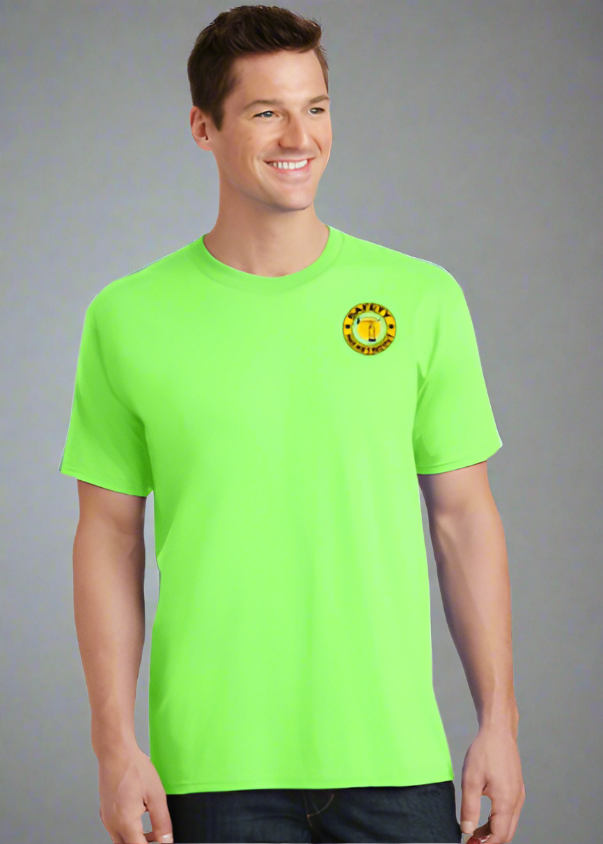 • 50/50 cotton/poly ( Heather Navy,, Heather Red,  , Neon Green, Neon Orange, Neon Yellow, S. Green, S. Orange)