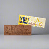 Help your employee, student, vendor or volunteer believe that they do Make the Difference with our traditional-sized premium milk chocolate bar. Send the message twice, engraved in the premium milk chocolate and repeated on the bright and colorful wrapper. Each bar measures 2″ x 5″ and weighs 1.2oz.